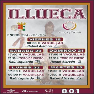 Nuestro departamento de gestoría da comienzo al 2024 con los festejos preparados para las fiestas de enero de Illueca. Las ganaderías Raúl Izquierdo y Rafael Alarcón serán las protagonistas de estos 5 días de festejos: